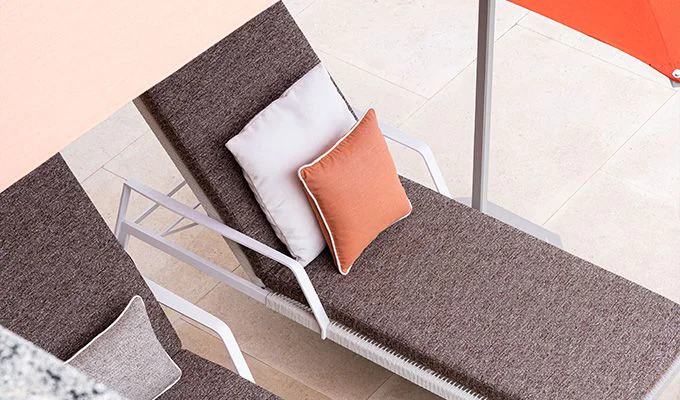 Tundra Souk is woven from 100% Sunbrella acrylic, offering exceptional durability and lasting color for both indoor and outdoor applications. The jacquard construction creates a richly textured surface with an artisanal feel, making it ideal for decorative seating and cushions. Designed for performance, it provides resistance to fading, moisture, and everyday wear while maintaining a soft yet structured hand. Finished with a non-PFAS water-repellent and stain-resistant treatment, Tundra delivers trusted Sunbrella performance with a naturally inspired aesthetic.